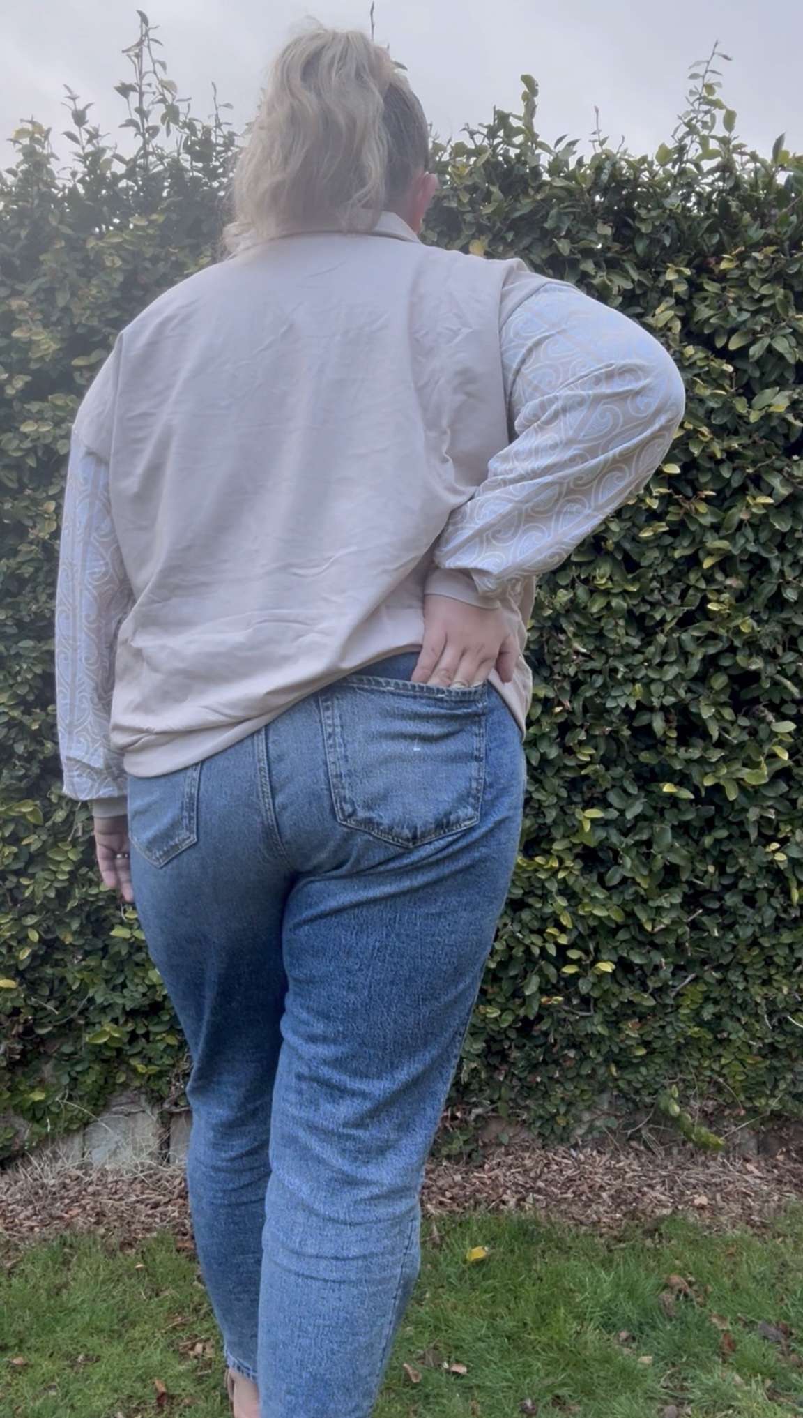 Model is a size 18 roughly and wearing a Large